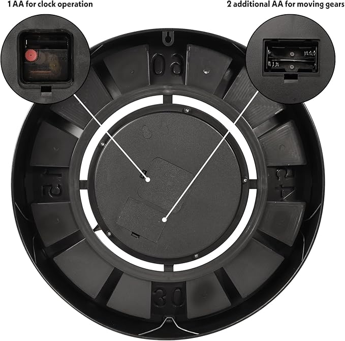 - EASY TO INSTAL-Oversized Wall clock arrives fully assembled. The large wall clock is designed to be hung on the wall (including hanging hardware), and the hook type is easy to install.Powered by 3 x AA battery ( not included ): 2 batteries for the gears to start spinning, and 1 battery for the clock hands to move to tell the time;
