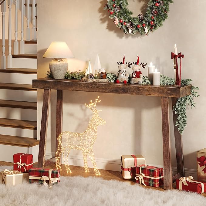 - 【Built-in Side Charging Station】Say goodbye to awkward outlet searches. This entryway table comes with a side power station (2 AC + 1 USB + 1 Type-C), perfect for powering table lamps, diffusers, holiday décor, or charging your phone. Because the front and back look identical, you can place the outlet on either side, left, right