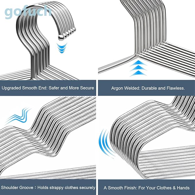 - Non-Slip Shoulder Grooves : These Stainless Steel Hangers feature specially designed anti-slip grooves on the shoulders, perfect for securing strappy tops, dresses, and other delicate garments. An ideal Coat Hanger solution for the whole family's diverse wardrobe needs.