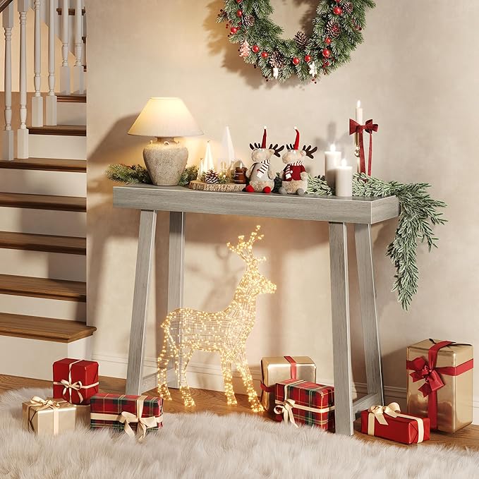 - 【Built-in Side Charging Station】Say goodbye to awkward outlet searches. This entryway table comes with a side power station (2 AC + 1 USB + 1 Type-C), perfect for powering table lamps, diffusers, holiday décor, or charging your phone. Because the front and back look identical, you can place the outlet on either side, left, right