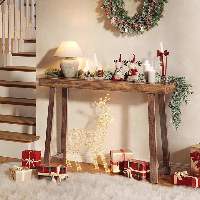 - 【Built-in Side Charging Station】Say goodbye to awkward outlet searches. This entryway table comes with a side power station (2 AC + 1 USB + 1 Type-C), perfect for powering table lamps, diffusers, holiday décor, or charging your phone. Because the front and back look identical, you can place the outlet on either side, left, right