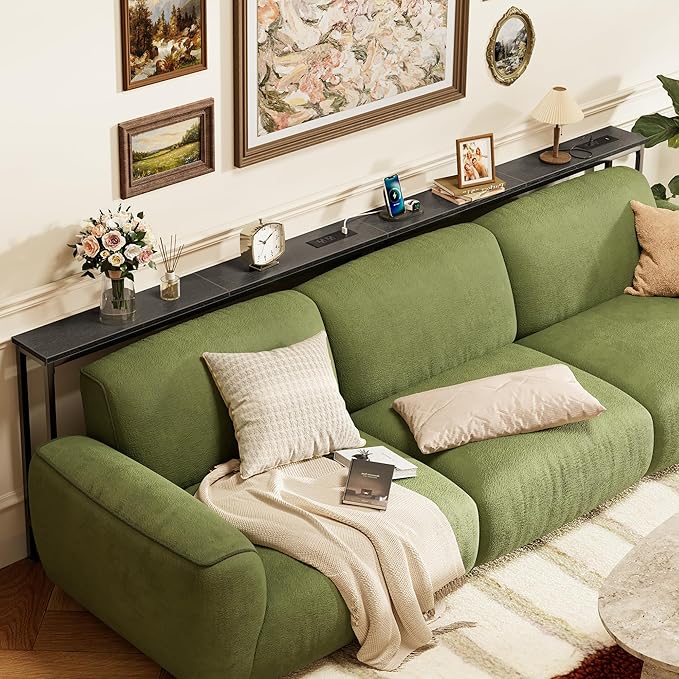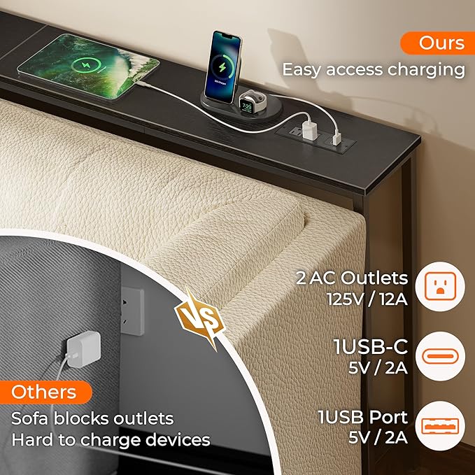 - 【Easy to Assemble & Fits Anywhere】Whether behind a sofa, in an entryway, or along a narrow wall, this couch table behind sofa is the perfect storage solution for tight spaces. Designed to leave room for wall vents and easy airflow. Comes with clear instructions, labeled parts, and tools included, you'll have this sofa table with outlet set up in no time