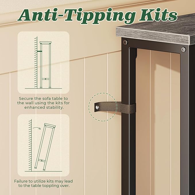 - 【Easy to Assemble & Fits Anywhere】Whether behind a sofa, in an entryway, or along a narrow wall, this couch table behind sofa is the perfect storage solution for tight spaces. Designed to leave room for wall vents and easy airflow. Comes with clear instructions, labeled parts, and tools included, you'll have this sofa table with outlet set up in no time