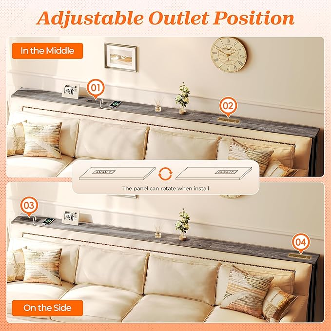 - 【Flexible Power Outlet】This 102.4-inch long console table features a built-in power outlet with 2 AC ports, 1 USB port, and 1 USB-C port. Designed for ultimate flexibility, the outlet can be installed in 4 different positions to perfectly fit your space and setup. Easily charge your laptop, phone, tablet, or game controller without reaching behind furniture — power and convenience, exactly where you need it