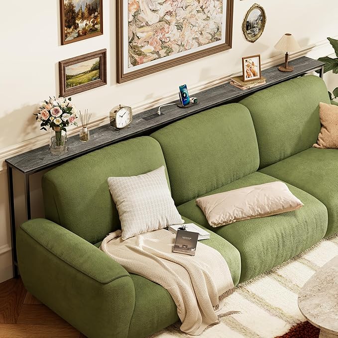 - 【Easy to Assemble & Fits Anywhere】Whether behind a sofa, in an entryway, or along a narrow wall, this couch table behind sofa is the perfect storage solution for tight spaces. Designed to leave room for wall vents and easy airflow. Comes with clear instructions, labeled parts, and tools included, you'll have this sofa table with outlet set up in no time
