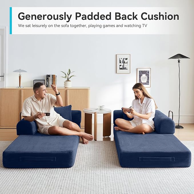 - 【High-quality Material】 Our convertible sofa bed is made for tactile luxury with premium corduroy fabric, woven for velvety softness. Paired with high-density sponge cushioning, this sofa offers cloud-like support that retains its shape through years of lounging, naps, and playtime.