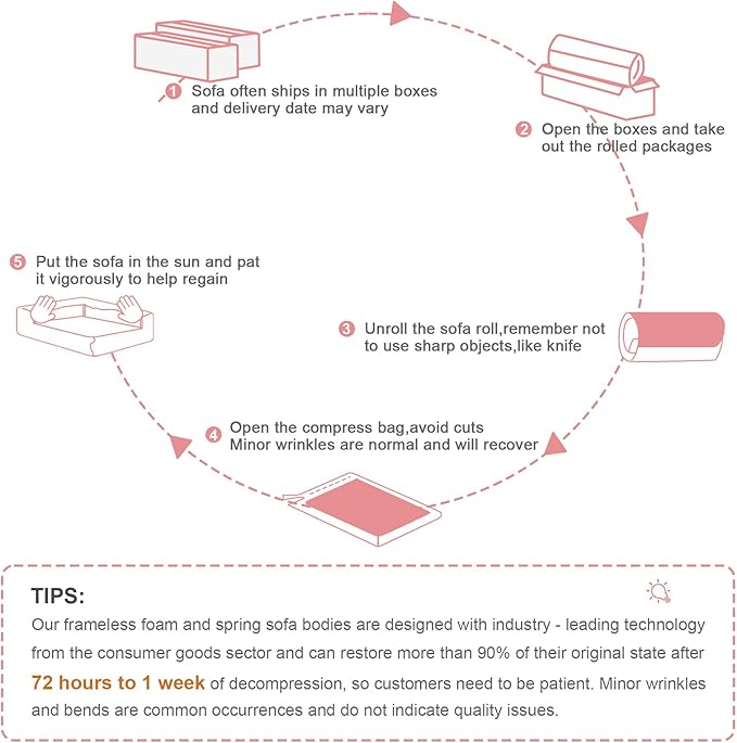 - 【No Assembly Required】—This memory foam couch set comes vacuum-packed, with each module as a sofa couch in a box, ready to use out of the box and fully restoring its shape within 3–7 days—just open and enjoy.