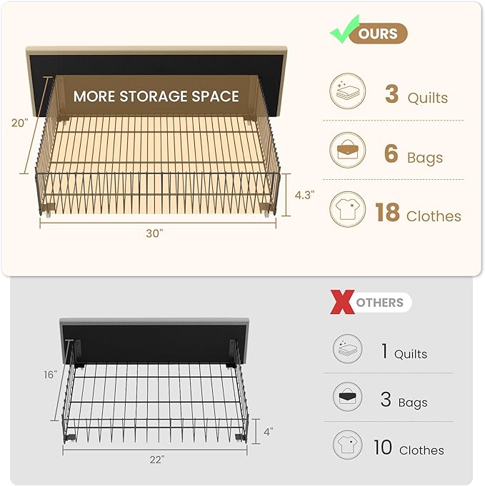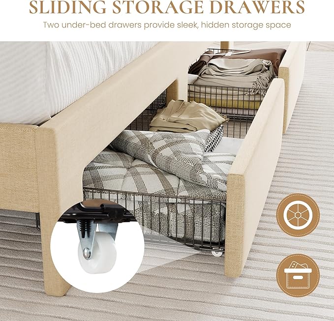 - Ample Storage Capacity: Features 2 oversized footboard drawers, 2-tier wide headboard shelves and wingback storage pockets, this king storage bed frame gives you versatile storage for bulky items like quilts and bags as well as small essentials like phones and glasses—perfect for solving bedroom clutter