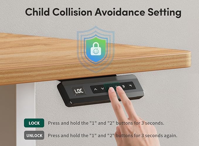 - Memory Height & Anti-Collison Technology: Standing desk has 2 programmable memory height buttons. If the adjustable desk encounters obstacles when lifting, it will move 2cm in the opposite direction to avoid possible damage or injury