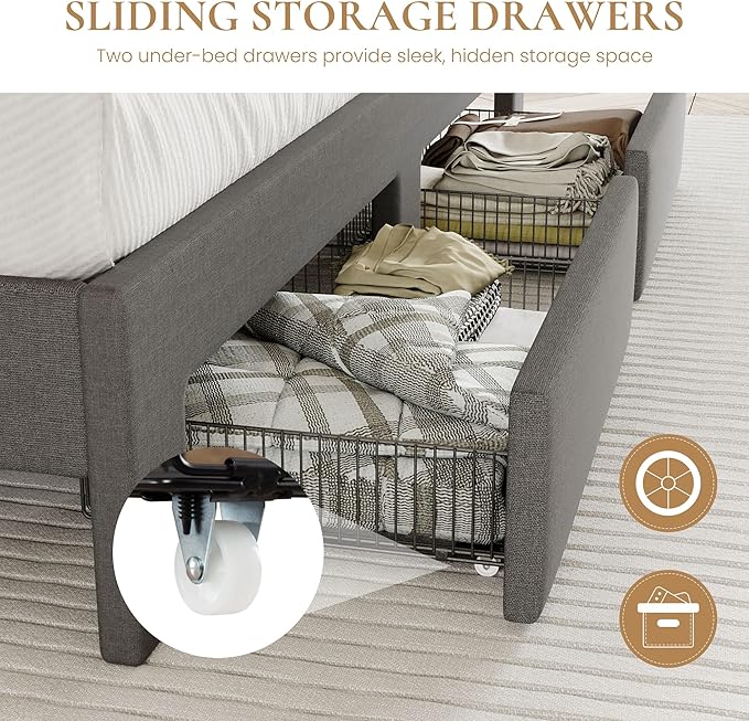 - Ample Storage Capacity: Features 2 oversized footboard drawers, 2-tier wide headboard shelves and wingback storage pockets, this king storage bed frame gives you versatile storage for bulky items like quilts and bags as well as small essentials like phones and glasses—perfect for solving bedroom clutter