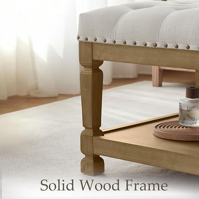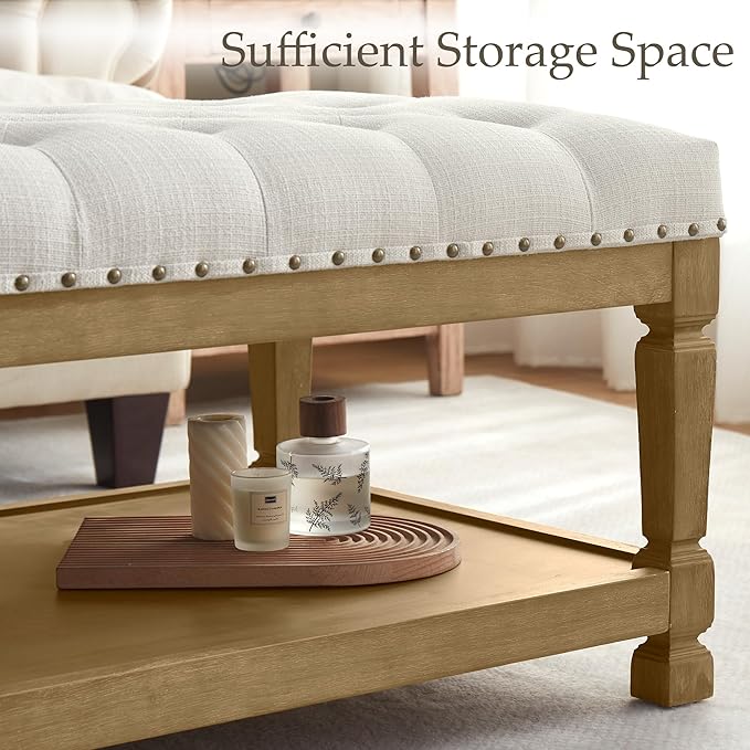 - Timeless Design:This farmhouse coffee table ottoman features classic tufted button detailing on the top, paired with decorative nailhead trim along the edges. The handcrafted accents lend a vintage, sophisticated charm, blending elegance with functionality