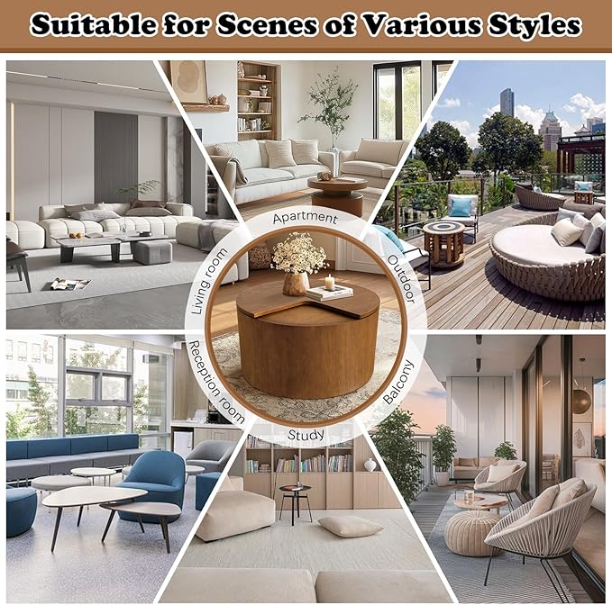 - Sturdy Construction: This round storage coffee table is made of thick, durable medium-density fiberboard, and a load capacity of up to 200 pounds. The rounded shape easily maximizes your space and is suitable for apartments, studios, or cozy lounges. The thoughtfully designed feet protect floors from scratches.