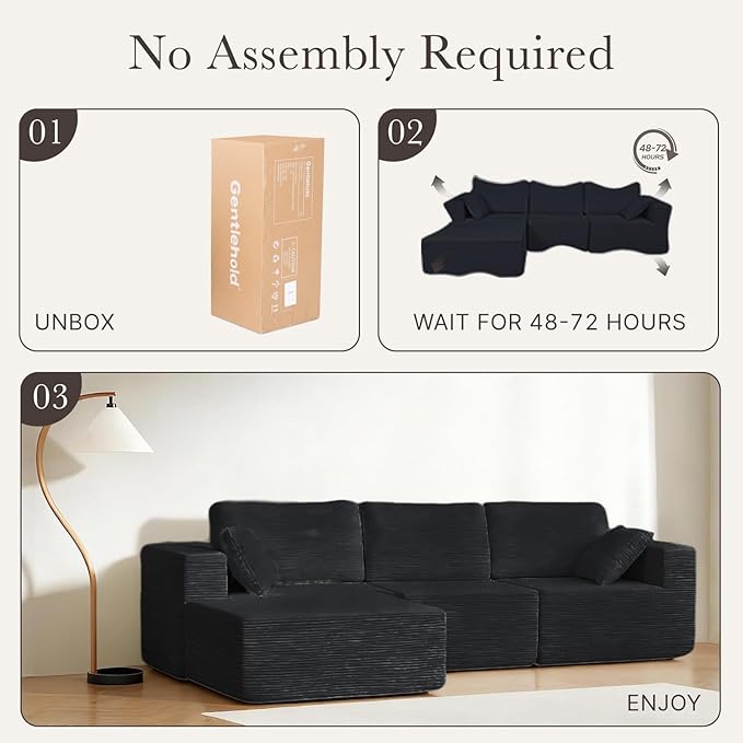 108” Modular Sectional Sofa Couch with Ottoman, 3-Seater Boneless Couch, L Shape Sectional Sofa Compressed Sofa for Living Room Bedroom, No Assembly Needed (Black, 3 Seats+1 Ottoman)