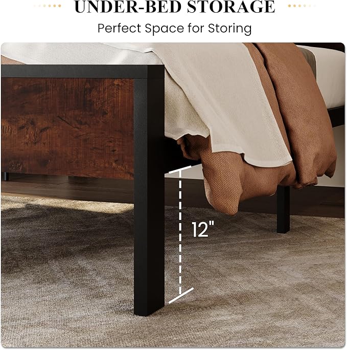 - Unique Design: The combination of rustic style headboard and footboard with retro frosted metal slats creates a strong industrial/rustic flair, adding an industrial and unique touch to your room. The headboard consists of a waterproof & scratchproof wood board