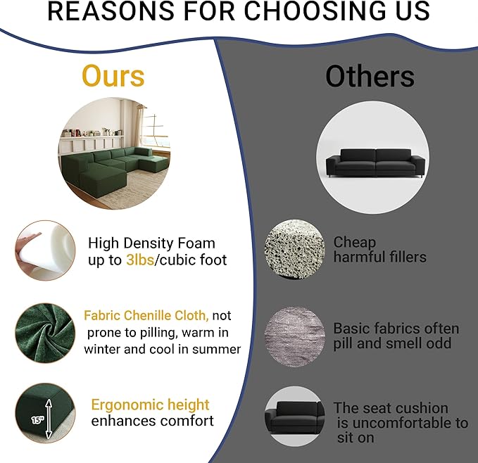 - Modular Flexibility: Armless, Conner, Ottoman, base unit enables free assembly into straight/L-shaped/U-shaped layouts. Pair with additional modules (sold separately) for custom configurations.(Spot clean recommended).