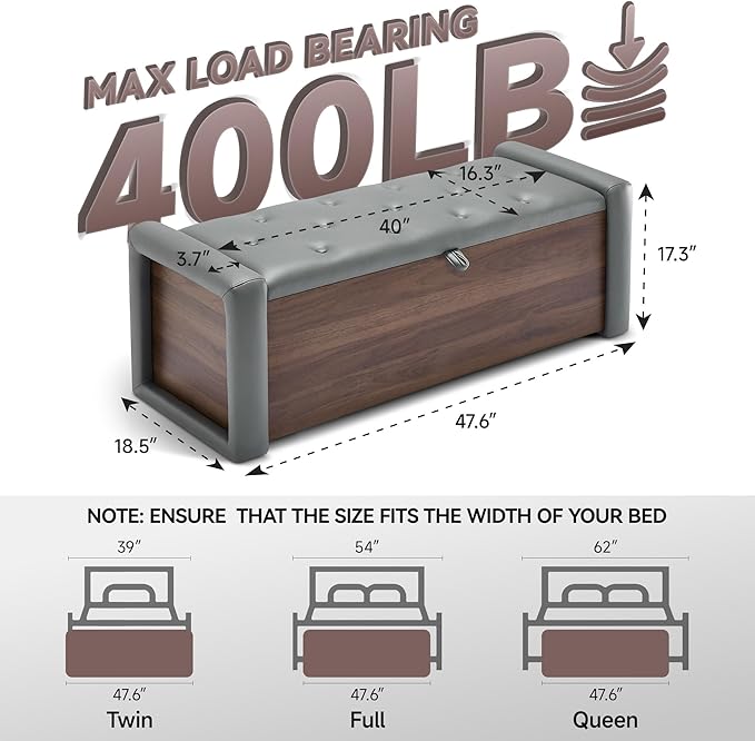 - Spacious Storage for a Tidy Home: This bedroom bench offers a generous hidden compartment to organize shoes, blankets, pillows, and more. Perfect for adding extra storage at the end of your bed or keeping entryways neat and clutter-free