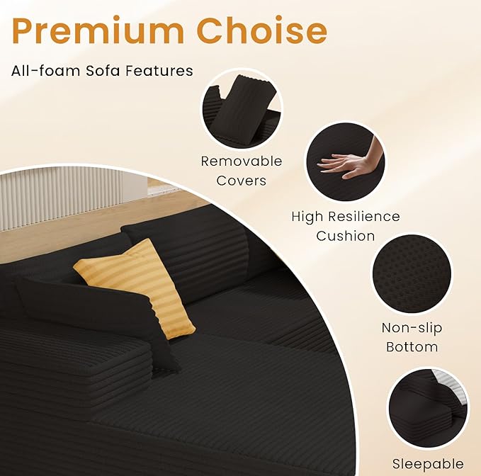 - Sumptuous Corduroy Comfort - Wrapped in premium, breathable corduroy fabric, this cloud modular sectional sofa offers a uniquely soft and inviting feel. The elegant ribbed texture adds a touch of visual warmth to your room while providing a luxuriously comfortable seating experience. That is both smooth and durable