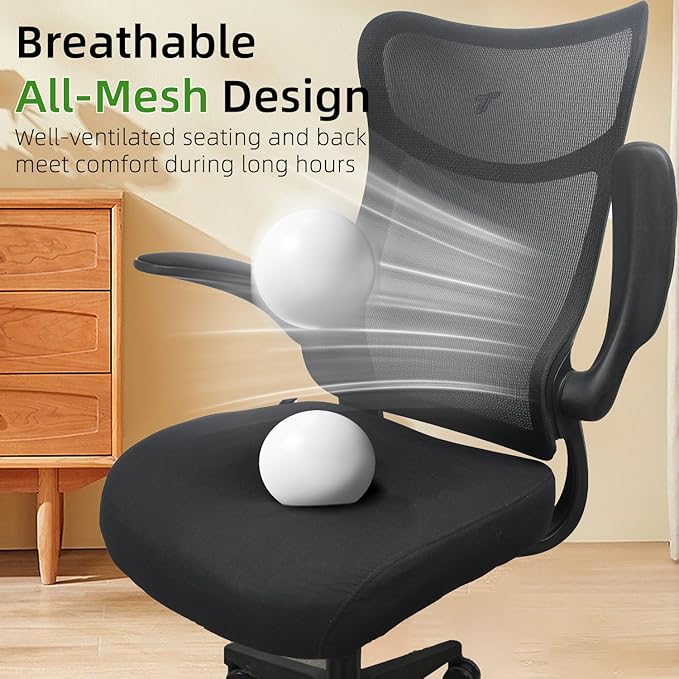 - ✅ Space-Saving Flip-up Arms: Designed with a compact footprint, this chair is perfect for smaller spaces. The padded armrests flip up easily, allowing you to tuck the chair under your desk when not in use and giving you the freedom of movement you need.