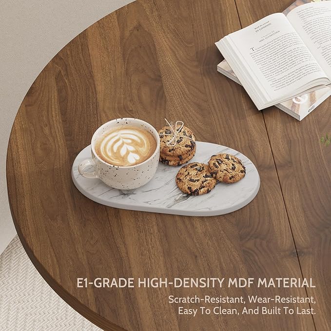 - Modern Farmhouse Elegance:This 31.5-inch small round dining table features a walnut wood veneer finish and a wave-patterned pedestal base, adding warmth and charm to your home. The modern farmhouse design blends seamlessly with rustic, vintage, or contemporary kitchen and dining room décor.