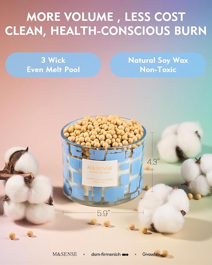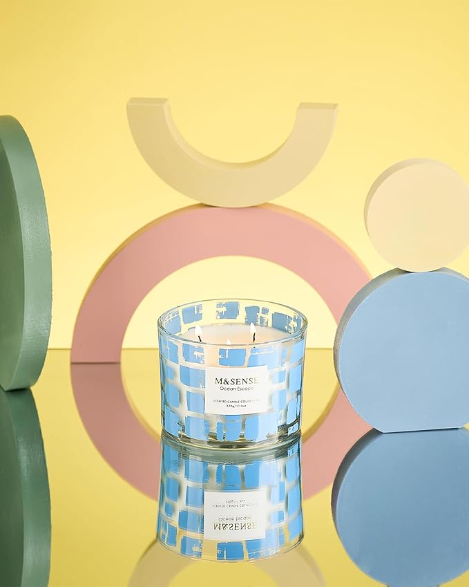 M&SENSE Ocean Escape Scented Candle,11.6oz Natural Soy Wax Non Toxic for Home, 3 Wick Jar Candle, Up to 60 Hours Burn time,Relaxing Aromatherapy Gifts for Women