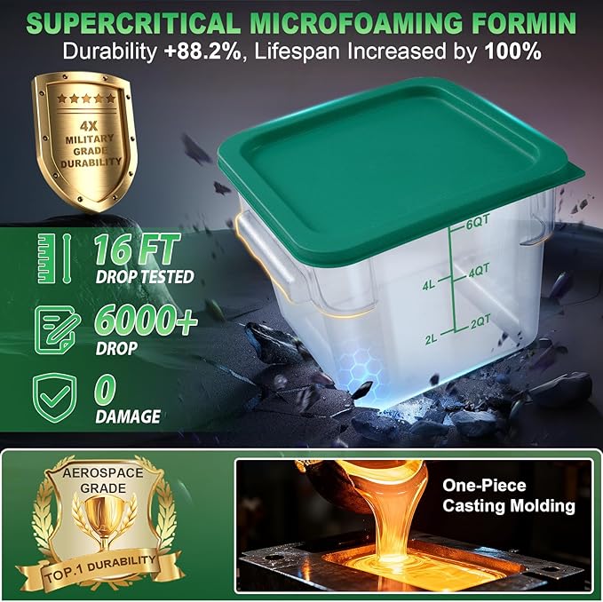 2QT&4QT NSF Food Storage Containers with Lids: 4 PCS [Total Food Grade][Hot&Cold Resistant] Commercial Clear Food Storage Containers for Restaurant Kitchen Proof Dough, Green