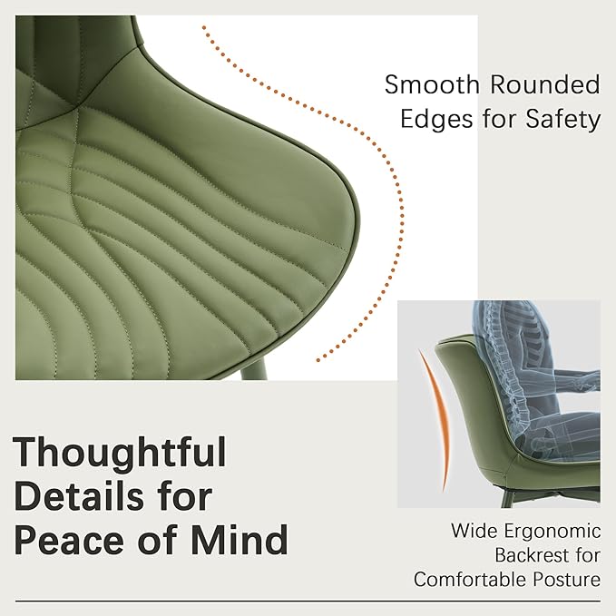 YOUTASTE Upholstered Leather Dining Chairs Set of 2 All Olive Green, Mid Century Modern Comfy Kitchen Dining Room Chair, Green Metal Legs, Armless Accent Chair for Living Room Bedroom
