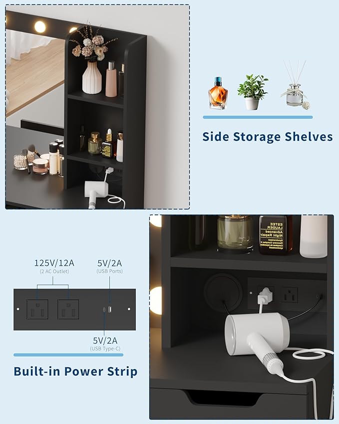 - STURDY, SAFE & FAMILY-FRIENDLY DESIGN: Engineered for stability with a robust frame and anti-tip secured vanity mirror with lights desk. Peace of mind for households with kids or pets. Enjoy worry-free glam sessions every day.