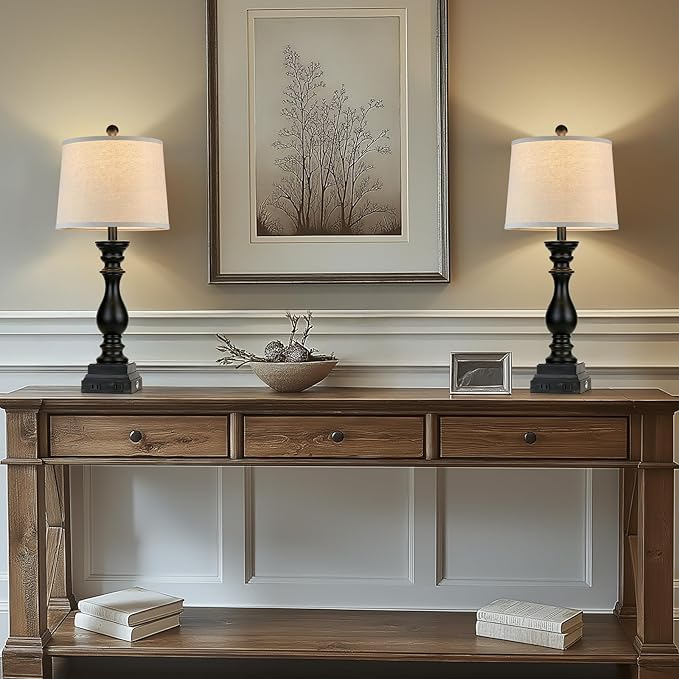 - 【Includes Energy-Saving LED Bulbs】Our living room lamps features two durable, energy-saving LED bulbs with a 25,000-hour lifespan. These bulbs provide a soft, flicker-free light that pairs perfectly with the linen lamp shade for a warm, cozy glow while reducing energy costs by up to 90%!
