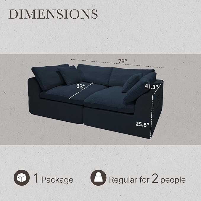 Cloud Modular Sectional Sofa Couch,78” 2 Seats Loveseat Sofa with Wide Armrest, Modern High-Density Sponge Compressed Sofa Couch for Living Room, Bedroom,No Assembly Needed (Blue, 2 Seats)