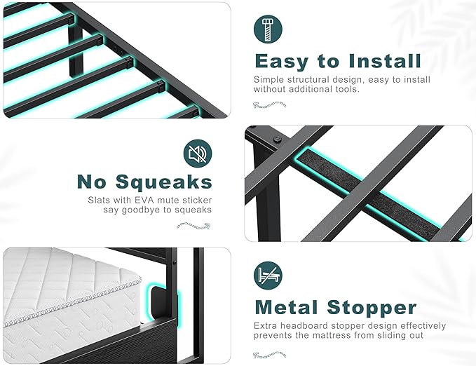 - 【NO Noise & No Sliding Mattress Full Bed Frame with Headboard】Provides a comfortable night's sleep,added mute sponge strips to the metal full size bed frame to avoid friction between metal parts, which can effectively reduce noise and rattling.Built-in design, fixed stopper, bed with metal baffle to prevent mattress sliding. The best support for latex, spring or memory foam mattress.