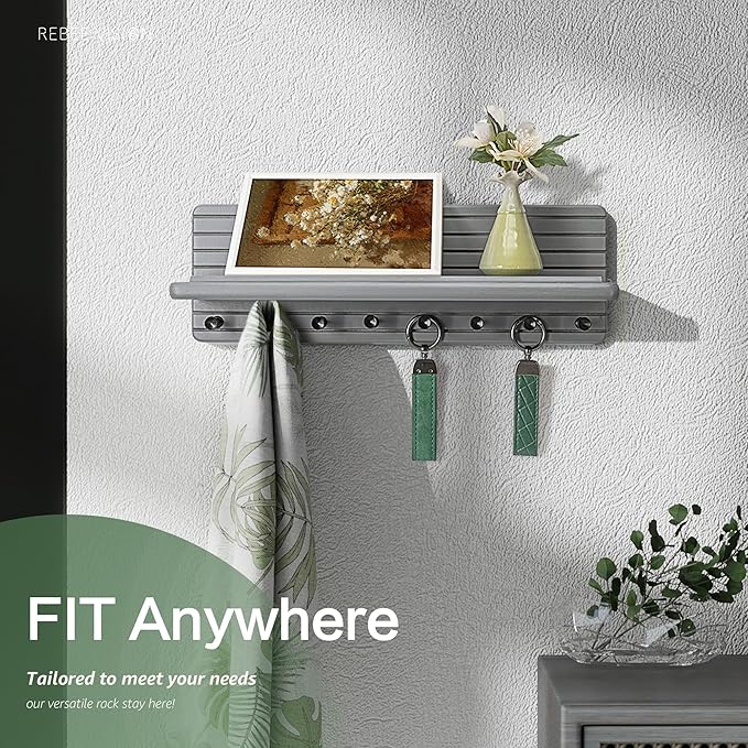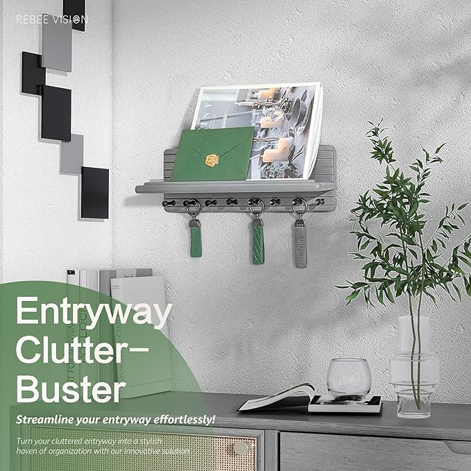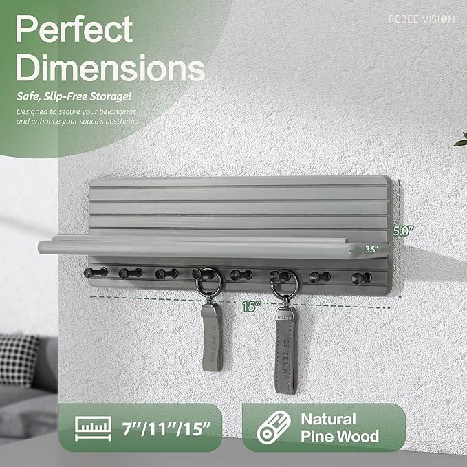 - [SPACE-SAVING CHAMPION] Meet the ultimate space-saver for your walls! This 15-inch key holder in sleek gray keeps your home decor organized and essentials always within reach. From key organizer to wallets and those little daily essentials, everything stays neatly in place—wave goodbye to cluttered counters and say hello to a calm home vibe!