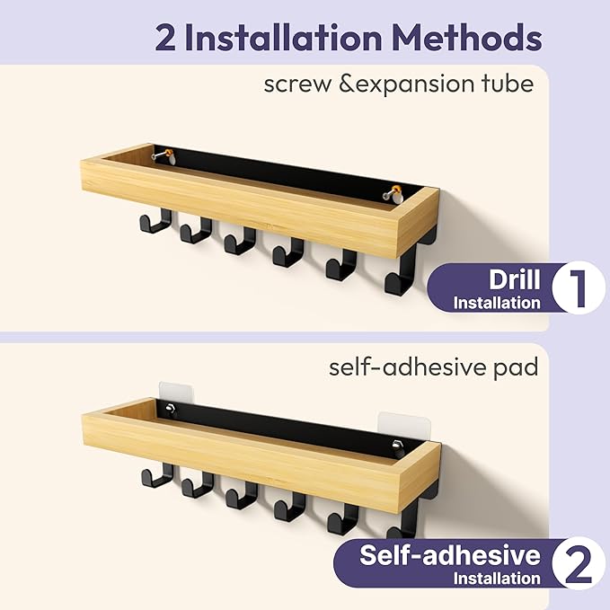 - [Your Preference, Your Assurance]: Effortlessly opt for your favoured installation method - adhesive application for wall preservation or the traditional screwing technique for added security. Robust adhesive pads ensure a secure, damage-free hold, ensuring swift, adaptable, and carefree setup for this versatile key hanger for wall