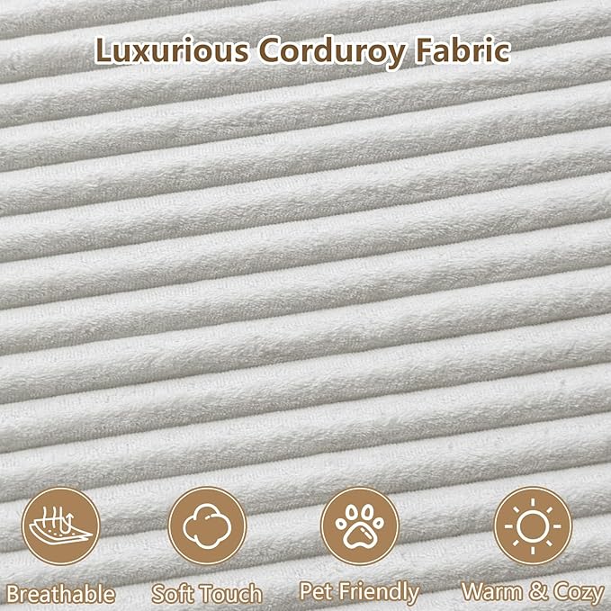 - Premium Corduroy Fabric: Soft & Easy-Care, Wrapped in high-quality corduroy, the sofa delivers unrivaled softness and warmth. The upgraded material boosts breathability and stain resistance—easy to clean and maintain. Its unique texture and gentle sheen stand out, while keeping you cozy in every season.