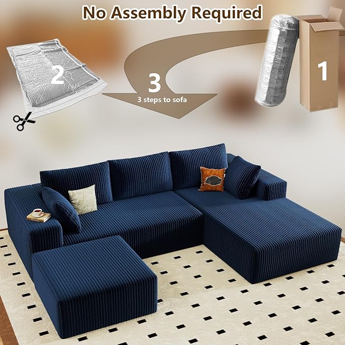 - No Assembly Needed:Skip the frustrating furniture setup! Unbox all parts, lightly tap each segment to restore its springiness, and your "cloud lounge" is ready to use. It reaches full luxurious plumpness within 72 hours, saving you time and effort.