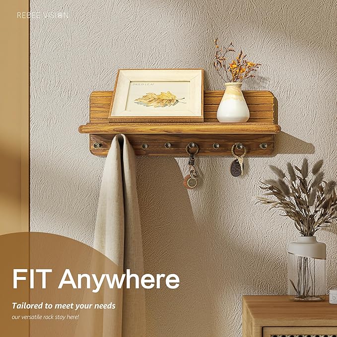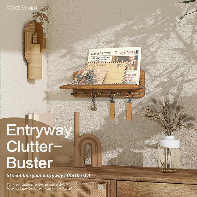 - [STRONG HOOKS] Durable, decorative, and dependable! Featuring 8 robust metal hooks, this wall-mounted key and mail holder keeps your coats, hats, and bags perfectly organized without bending or slipping. Start your day stress-free—everything you need is right at your fingertips! With this key rack, your cluttered desk will be a thing of the past.