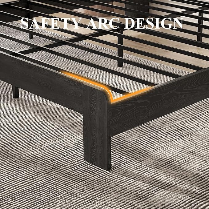 - Sturdy Structure: The wood bed frame adopts a reinforced high-quality steel frame and an extra-wide sturdy wood slat support system to ensure safety and durability, providing a strong and reliable support structure, with a capacity of up to 800 pounds