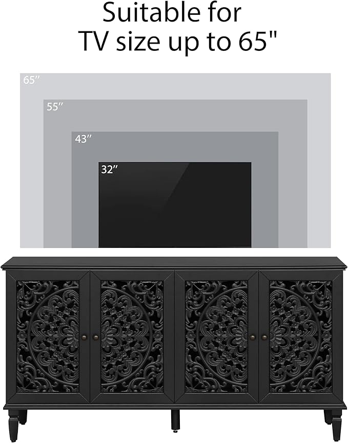 - ♬【Versatile 65" TV Stand & Storage】Designed as a sturdy media console (fits TVs up to 65") and spacious buffet server, ideal for the living room, dining area, hallway, or entryway.