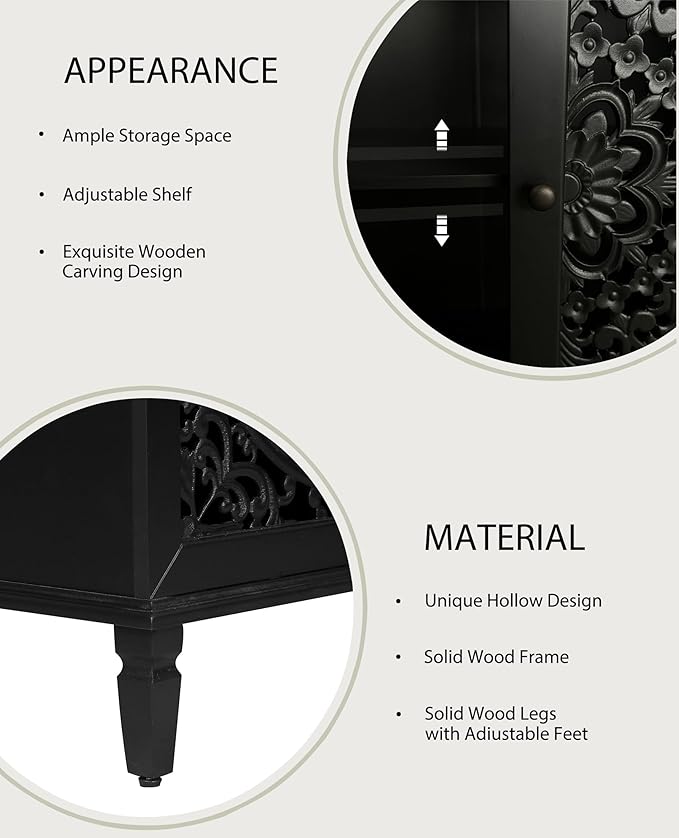 - ♬【Timeless Elegance & Craftsmanship】Features exquisite symmetrical floral openwork carvings on solid wood doors, finished in rich antique Glaze paint and accented with smooth antique brass handles for a luxurious vintage appeal.