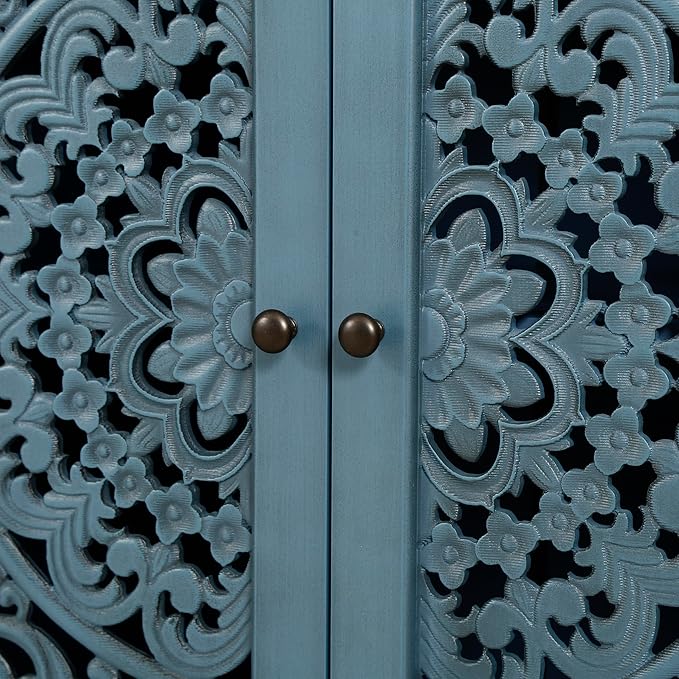 - ♬【Timeless Elegance & Craftsmanship】Features exquisite symmetrical floral openwork carvings on solid wood doors, finished in rich antique Glaze paint and accented with smooth antique brass handles for a luxurious vintage appeal.