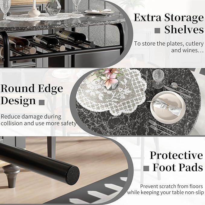 - 【Extra Storage Space】— The breakfast table is equipped with a multifunctional storage shelf underneath the table top, which provides extra storage space for wine, napkins, food trays and more.