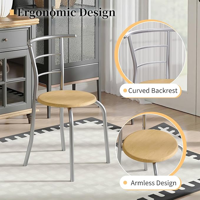 - 【SPACE-SAVING DESIGN】— The backrests of two chairs fit perfectly with the curved line of the dining table edge, allowing you to place the chairs under the table when not in use to free up more space. Ideal for small rooms or apartments.