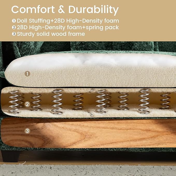 - Premium and Durability: This modular combination sofa is made of highly elastic foam, which will not sag or deform over time, providing lasting comfort and excellent breathability. The modular sofa is supported by a sturdy solid wood base, combining softness with sturdy structure, making it perfect for daily use without affecting support. Each seat can support 550 pounds