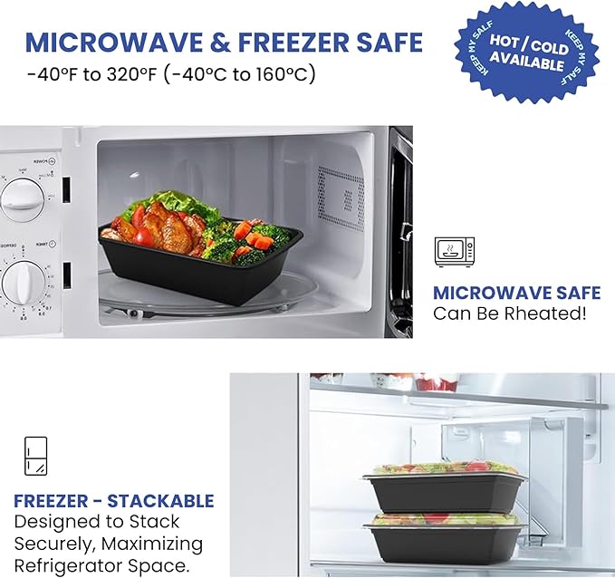 - π₯βοΈ MICROWAVE & FREEZER SAFE: These food storage containers can withstand a temperature from -40β to 248β, totally Microware Safe & Freezer Safe. Easily reheat your leftovers in the microwave just 2-3 mins to have delicious meals without switching dishes, or freeze meals for future use
