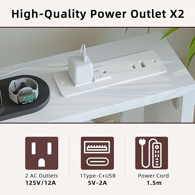 - 「Dual Outlet Design」: One outlet is placed on each end of the sofa table, making it convenient to use devices from either side of your couch.