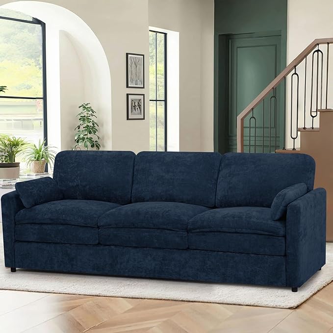 - STABLE FRMAE & SOFT CHENILLE: The 3 seats sofa is built with solid wood frame which is durable and stable. The skin-friendly chenille fabric make the 3 seaters having good touch feeling, perfectly for daily relaxation, movie night and entertaining guests