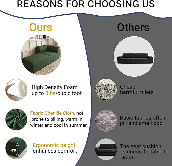 - Modular Flexibility: Armless, Conner, Ottoman, base unit enables free assembly into straight/L-shaped/U-shaped layouts. Pair with additional modules (sold separately) for custom configurations.(Spot clean recommended).