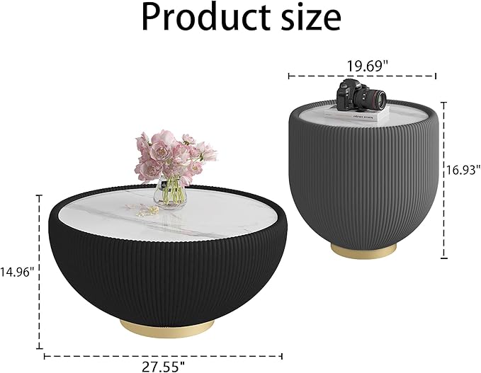 - 【Modern Round Coffee Table】Elevate your living space with this modern coffee table round, designed to impress with its stunning drum-shaped look. Cleaning is a breeze – just wipe down with a damp cloth to keep this funky coffee table looking as good as new