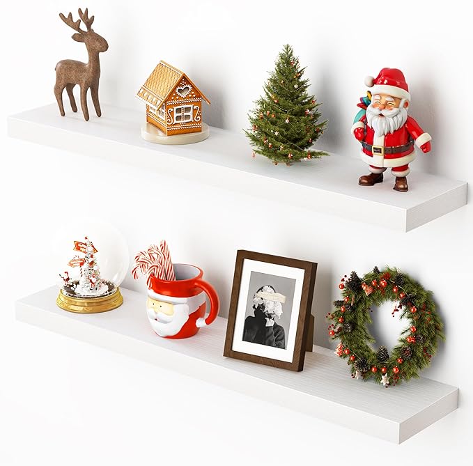 - 【Easy to install and clean】Our white wall floating shelves come with detailed installation instructions and can be installed quickly in 5 minutes-users can easily complete the installation without professional skills. The white floating shelf has a smooth surface, is durable, and is easy to clean. Just wipe it gently with a damp cloth to keep it clean.
