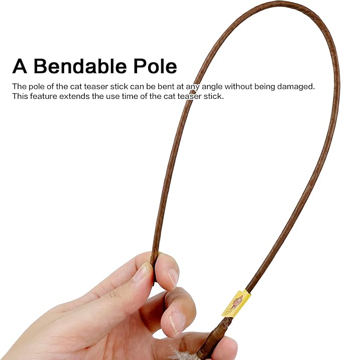 - 【A bendable pole】The pole of the cat teaser stick can be bent at any angle without being damaged. This feature extends the use time of the cat teaser stick.