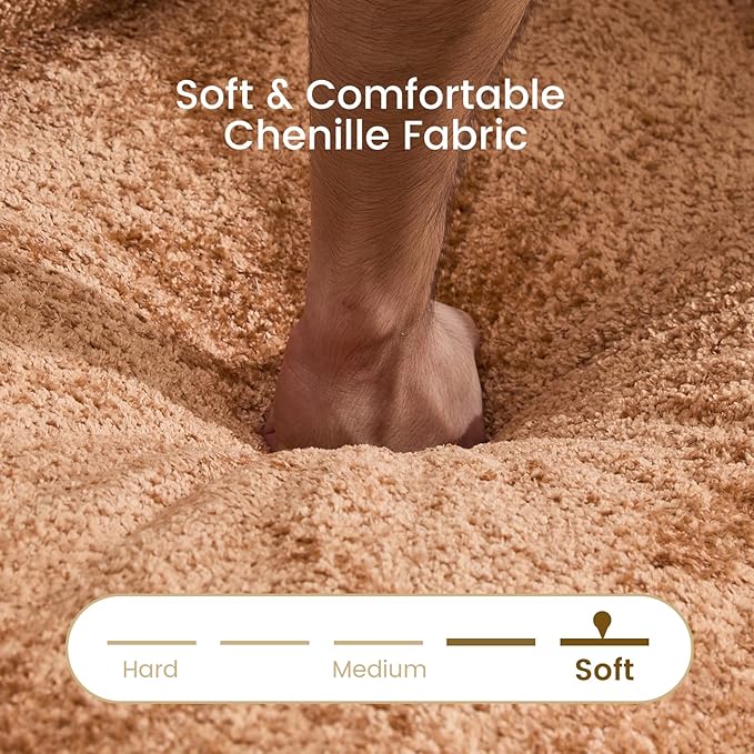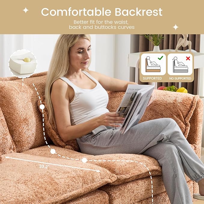- Chenille Fabric & Removable Washable Cover: This modular Cloud Sofa features fabric with longer, denser pile than standard chenille, instantly elevating your home's sophistication and comfort. Its soft, skin-friendly texture delivers an exceptional sitting and reclining experience. The thick, long-pile construction provides enhanced warmth, making it ideal for households with children and pets. The sofa's cushions and pillows are removable for easy washing, simplifying daily maintenance